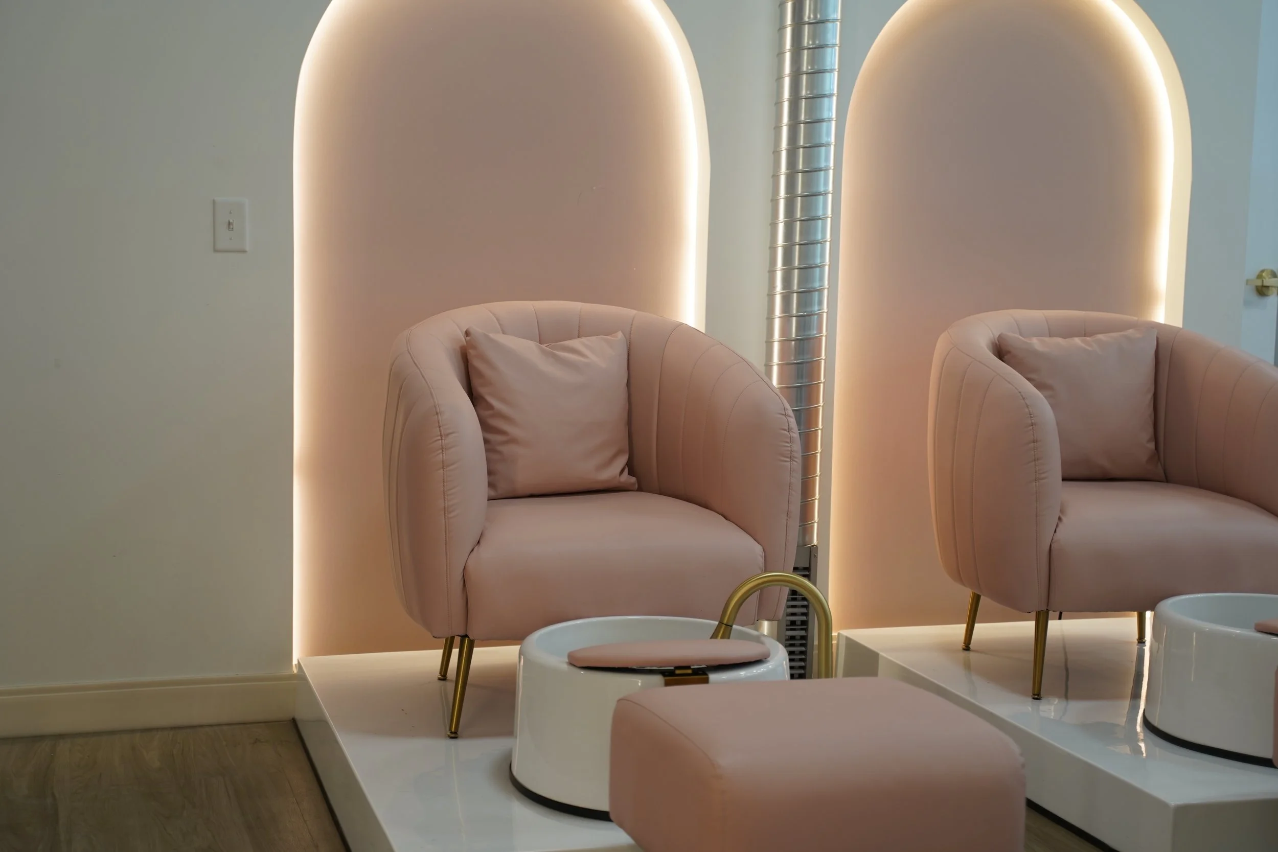 Expect good vibes, kind faces, and a little bit of luxury. When you walk in, we’ll greet you with a warm welcome and offer to hang your coat or bag. You’ll be offered a complimentary drink—champagne or spa water, your choice. Before your service begins, we’ll do a quick consultation to understand your goals and preferences. Whether it’s hair, nails, or skin—you’re in good hands.